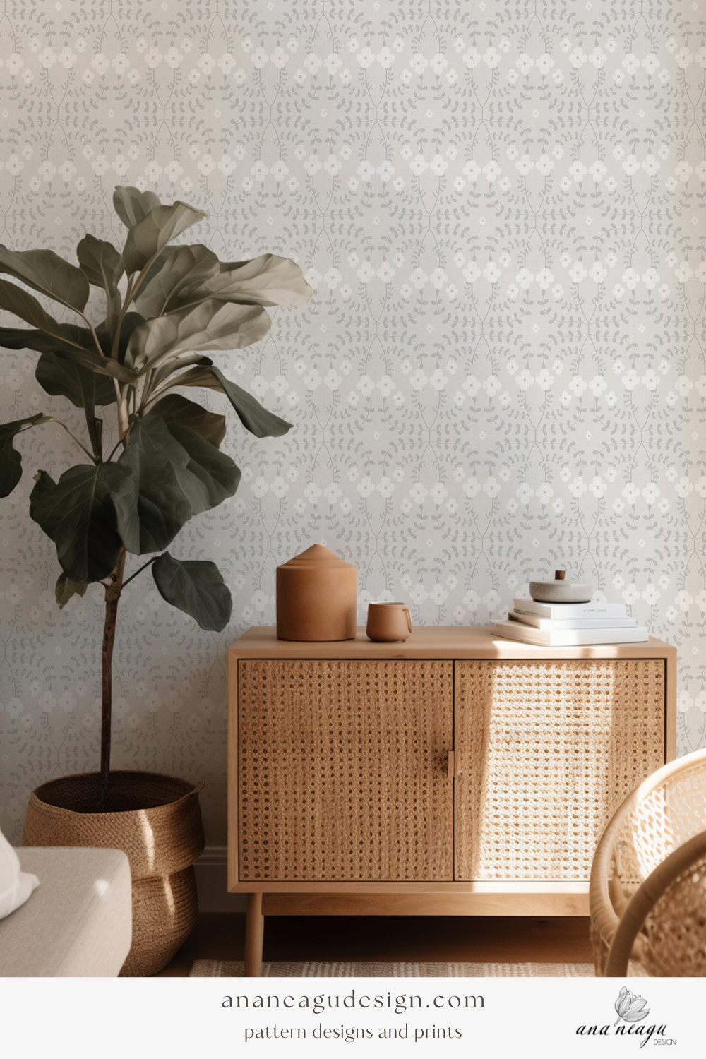 This collection showcases a warm, neutral, and earthy color palette with shades of Pantone Mocha Mousse, a rich and inviting brown hue. The intricate floral and leaf motifs create a cozy, rustic vibe perfect for a country cottage-inspired design. Available on Spoonflower and for licensing.